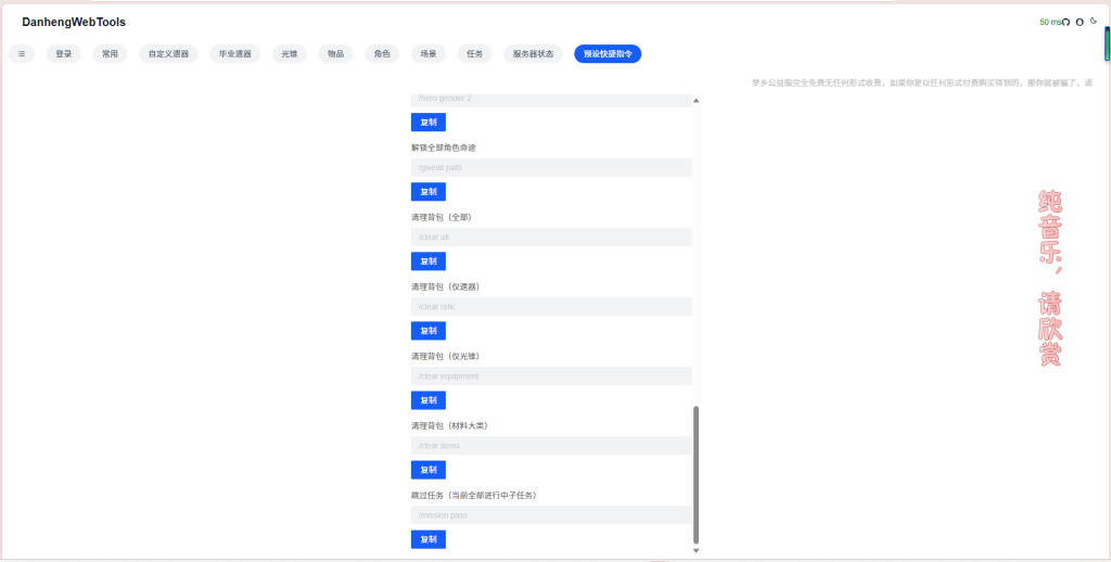 游戏内指令与任务管理请看指令生成器