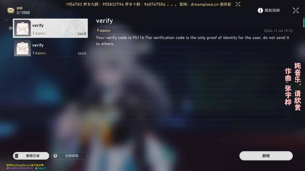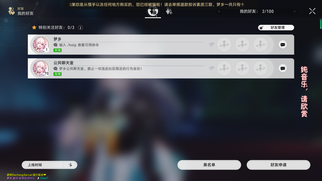 梦乡全部服务器不会收取玩家任何费用!